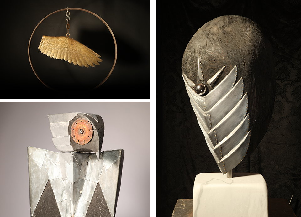 Holz, Blei, Stahlkugel, Höhe 90 cm